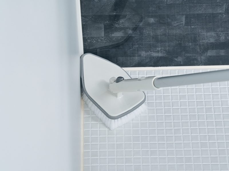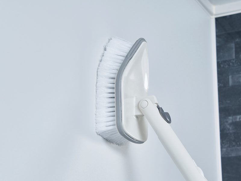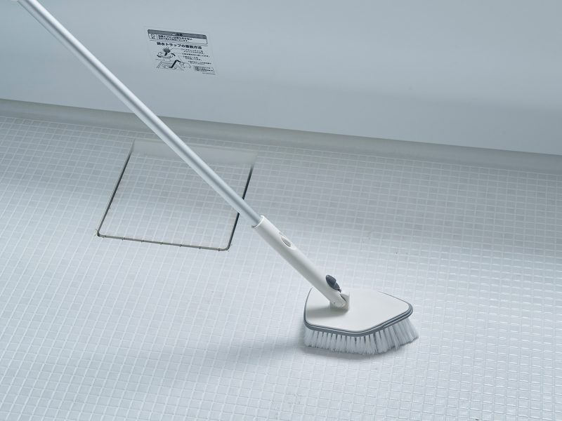 キズをつけにくくソフトに洗え、水はねしにくい先割れ加工を施した植毛を使用しています。また、ヘッドの周囲にキズをつけにくいゴム加工を施しています。 柄は最大115cmまで伸ばすことができるので、洗いにくい天井や壁上部のほか、床洗いもかがむことなくできるので、身体への負担が少なくお風呂掃除ができます。