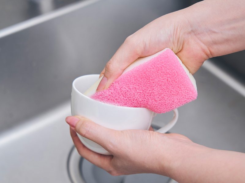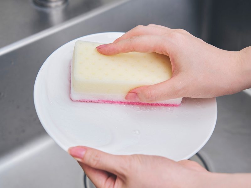 丈夫で汚れをやさしくカキ落とす圧縮ウレタンに、泡立つシリーズで使用している穴あきウレタンを使用することで泡立ちが良いプラスαのスポンジを実現しました。 また、環境配慮のためウレタンにバイオマス素材を10%配合し、抗菌・除菌効果の持続性が高いAg+抗菌も採用しました。