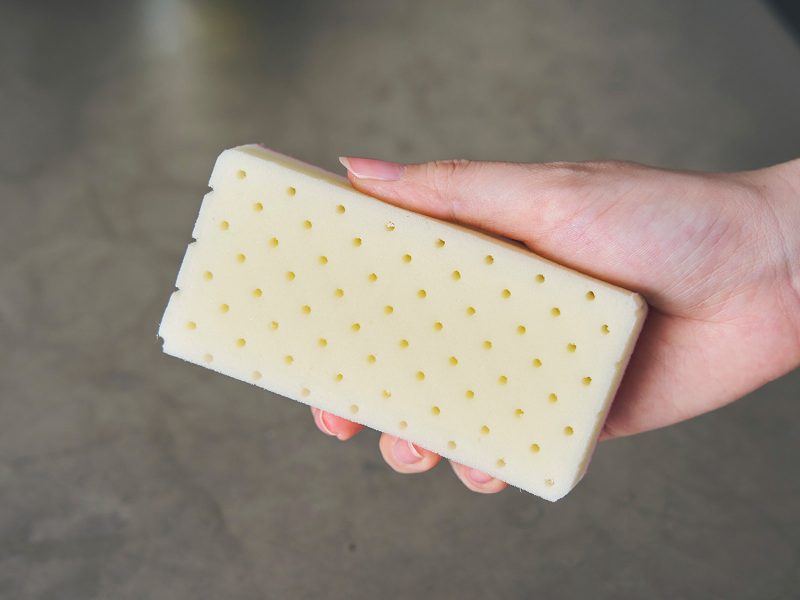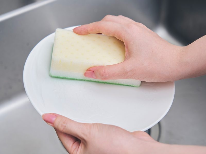 油汚れに強く水だけで汚れをキャッチするアクリル素材に、泡立つシリーズで使用している穴あきウレタンを使用することで泡立ちが良いプラスαのスポンジを実現しました。 また、環境配慮のためウレタンにバイオマス素材を10%配合し、抗菌・除菌効果の持続性が高いAg+抗菌も採用しました。